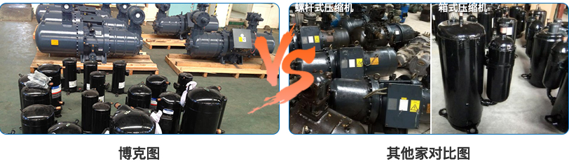 博克冷水機采用進口高端品牌谷輪/大金壓縮機,其他部分廠家采用普通品牌或二手壓縮機,甚至以小充大,使用不足匹壓縮機。