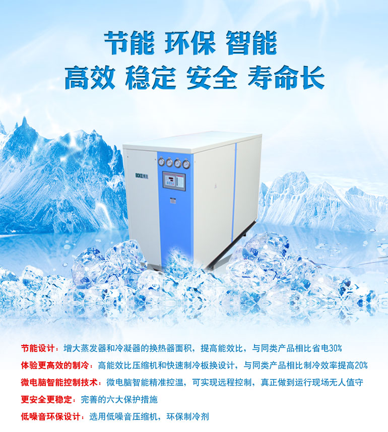 1、以上制冷量的工況為進水溫度12℃,出水溫度7℃,環(huán)境溫度32℃
